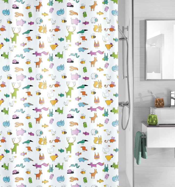 Koupelnový textilní závěs je vyroben ze 100% polyesteru. Závěs je naimpregnovaný, voda po něm krásně stéká do vany. V horní části závěsu je pevný pásek s otvory na kroužky. Aby textilní závěs byl stále napnutý, má v dolní části všitý zpevňovací proužek.