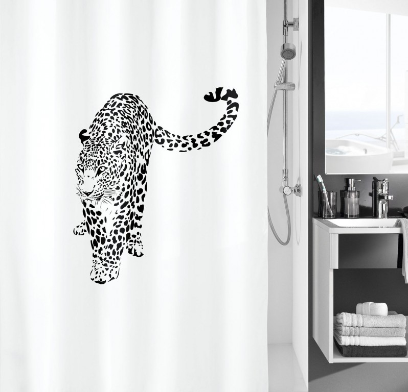 Koupelnový textilní závěs je vyroben ze 100% polyesteru. Závěs je naimpregnovaný, voda po něm krásně stéká do vany. V horní části závěsu je pevný pásek s otvory na kroužky. Aby textilní závěs byl stále napnutý, má v dolní části všitý zpevňovací proužek.