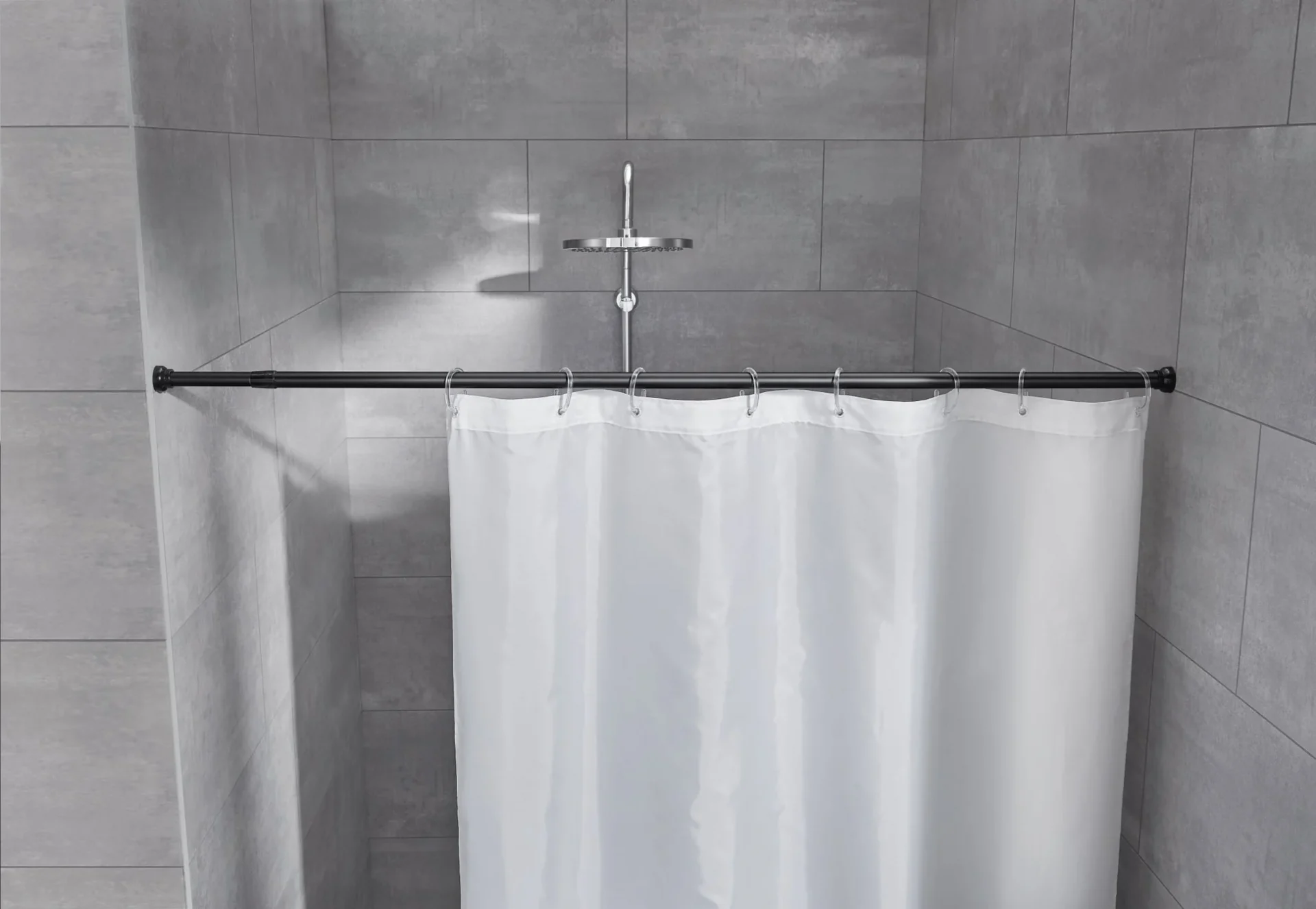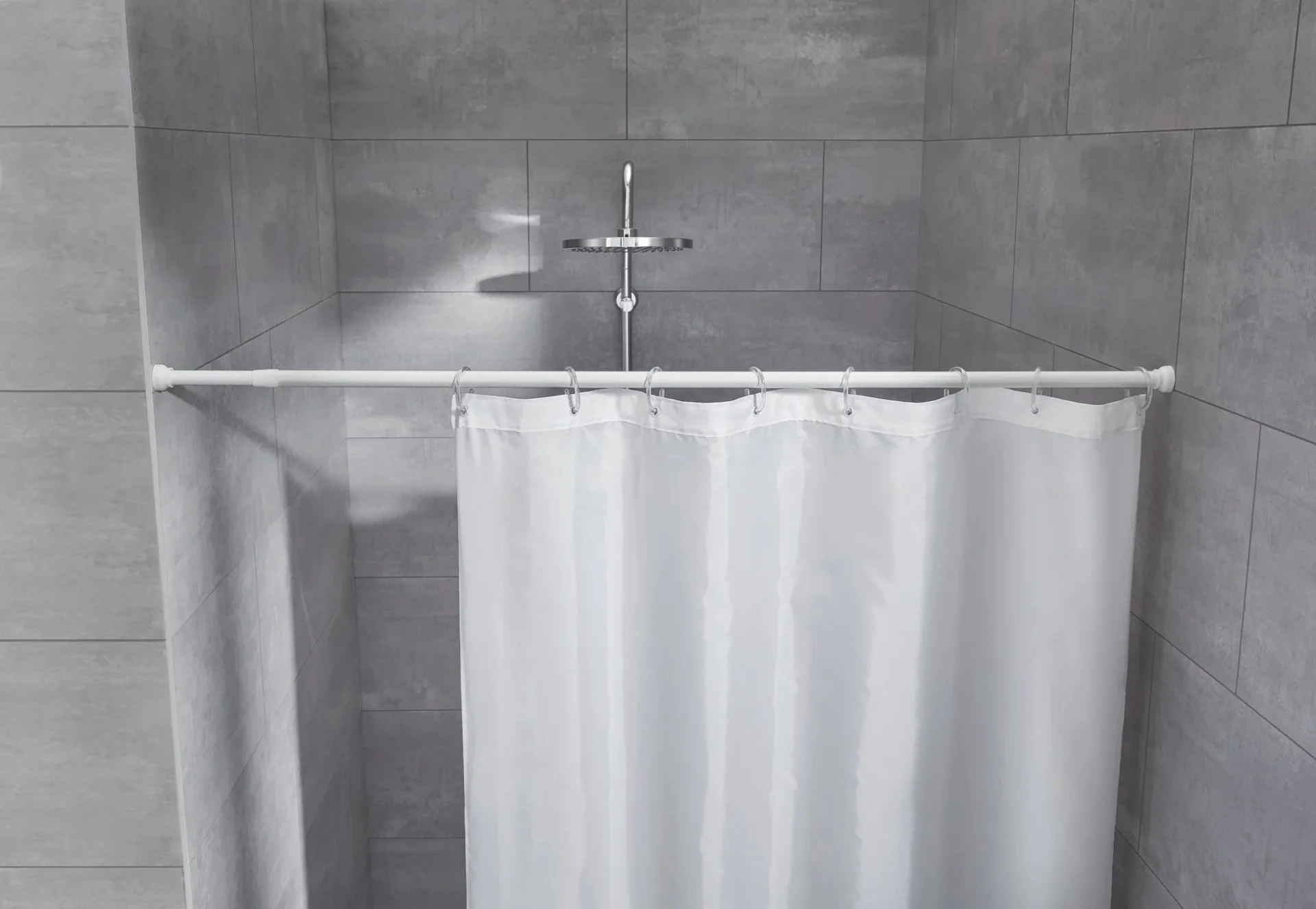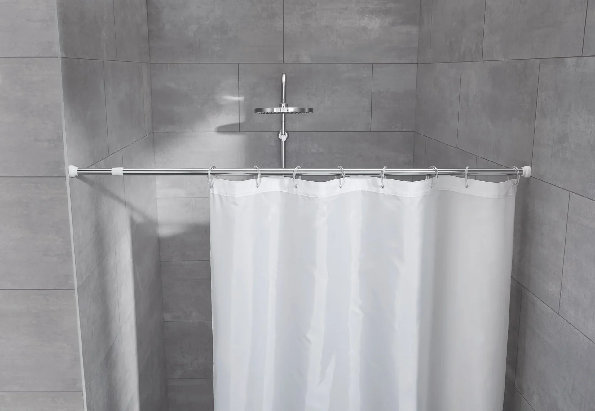 Teleskopická pružinová tyč o průměru 21 mm pro sprchový závěs, bez nutnosti vrtání.
