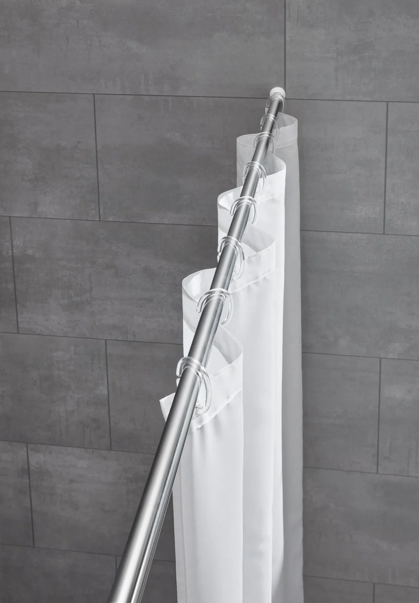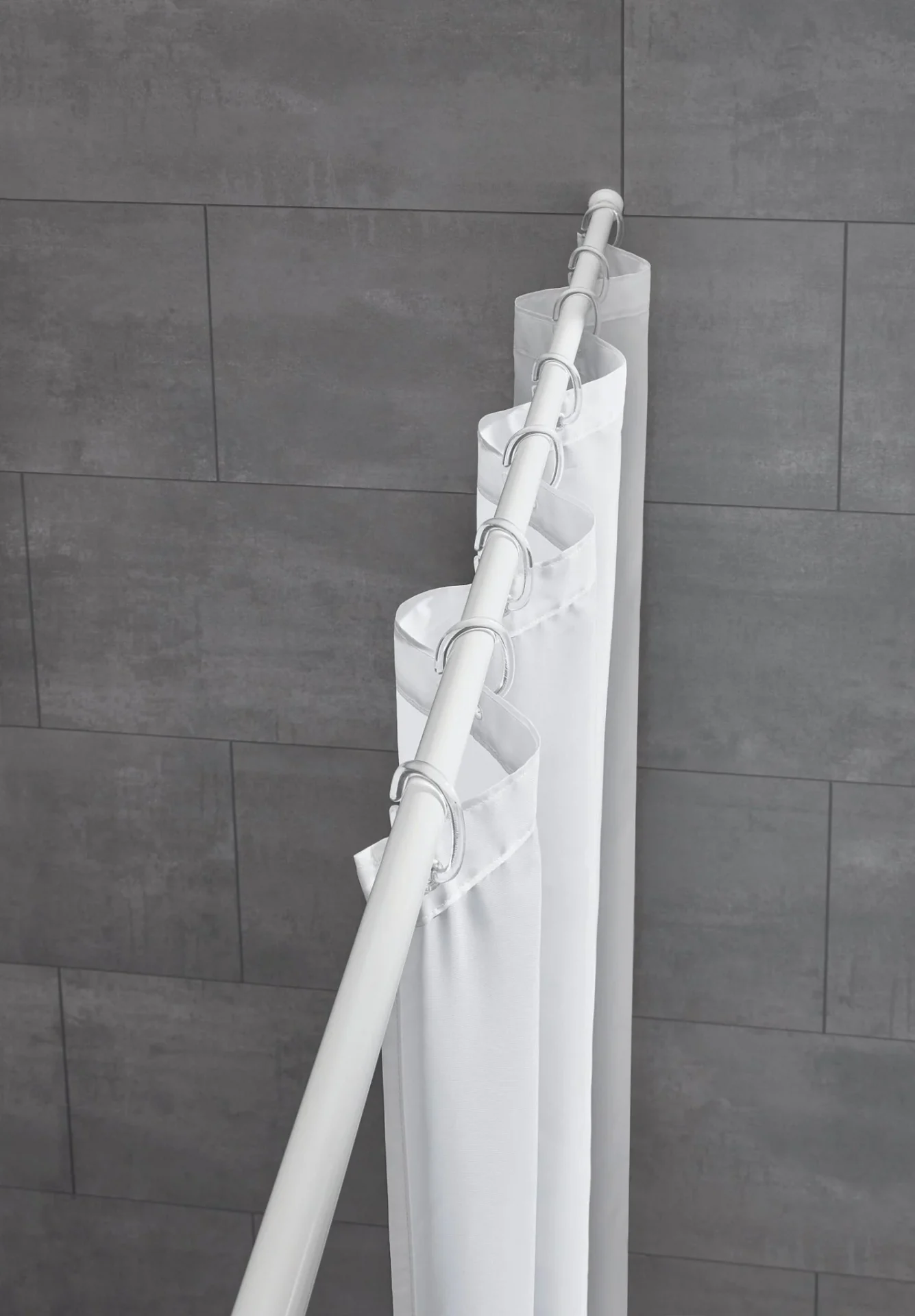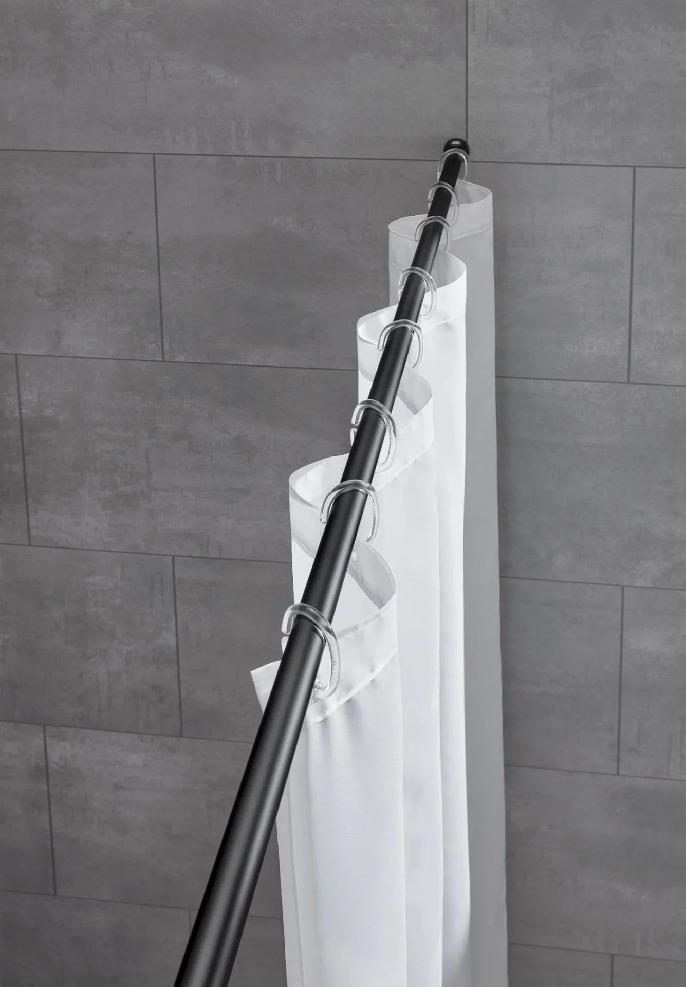 Teleskopická pružinová tyč o průměru 21 mm pro sprchový závěs, bez nutnosti vrtání.