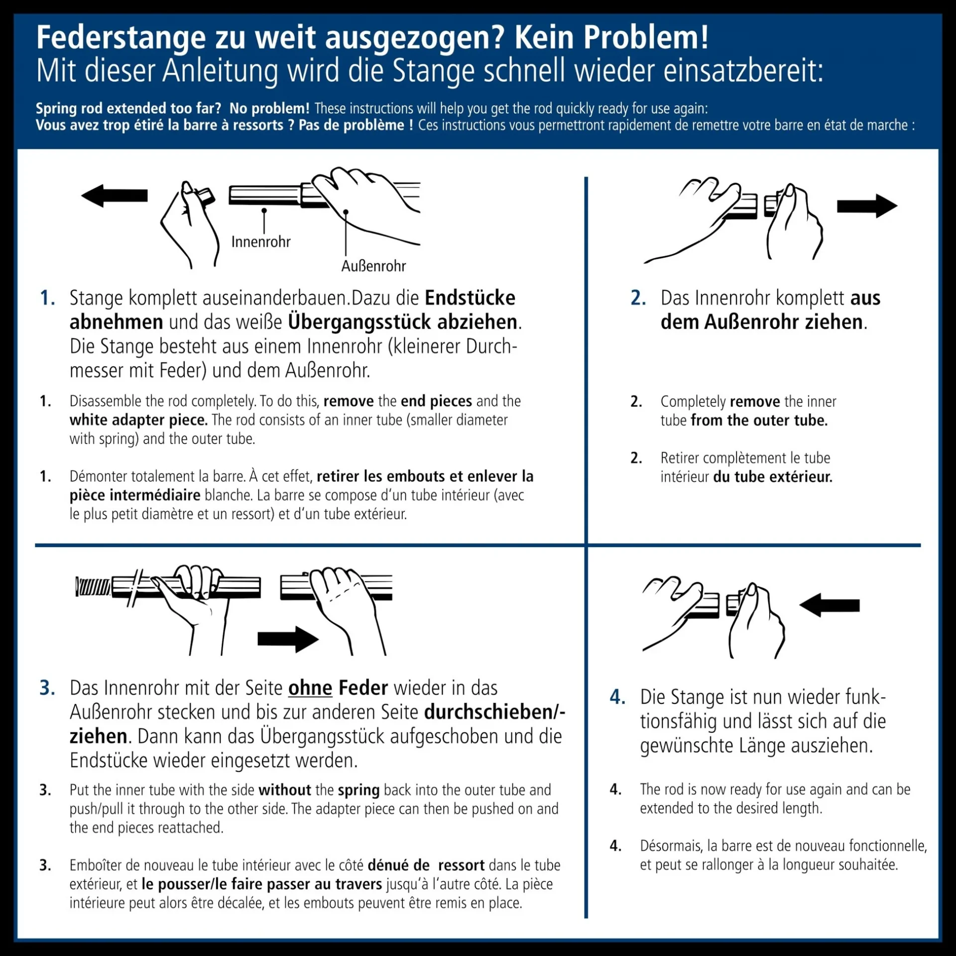 Natáhnout na požadovanou šířku + 3 cm a upnout. Možné zkrácení odříznutím (pilkou na železo) na délku od 20 cm. Materiál hliník.